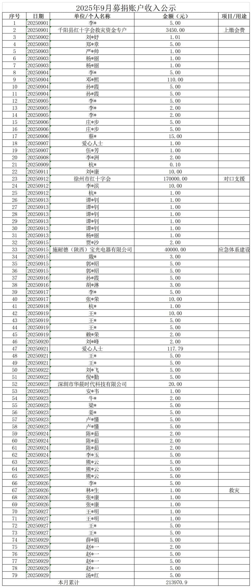 2025年9月募捐账户收入公示