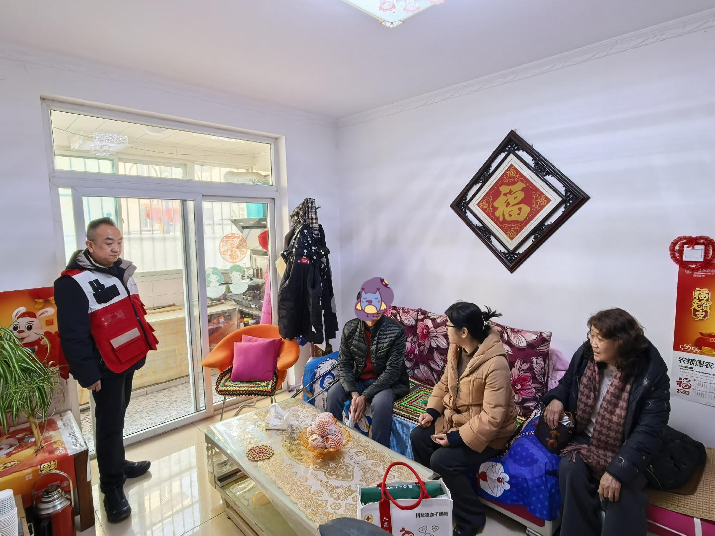 慰问团队来到一户困难群众家中,该家庭有两位七旬老人患病。老人长期饱受疾病困扰,身体状况不佳,生活自理能力受限,日常起居需要他人照料。蒋会长与老人亲切交流,仔细询问老人的病情、治疗情况以及生活需求,鼓励他们保持乐观心态,积极面对疾病。蒋会长强调,红十字会始终关注困难群众的生活状况,将尽最大努力提供帮助。县红十字会工作人员详细记录老人的需求,以便后续跟进服务。慰问团队为老人送上慰问品,包括米、面、油、春联、急救包等生活物资,并表达新年祝福。