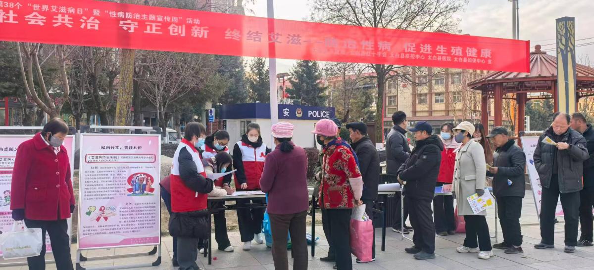 为持续推进艾滋病防治工作高质量发展,营造全社会参与艾滋病防治工作的良好氛围。12月1日,太白县红十字会联合县卫健局、县疾控中心等多家单位在县城街心广场开展以“社会共治,守正创新,终结艾滋”为主题的2025年“世界艾滋病日”集中宣传活动。本次活动旨在通过多部门协作与公众参与,提升艾滋病防治意识,推动社会共治格局的形成,助力终结艾滋病流行的全球目标。