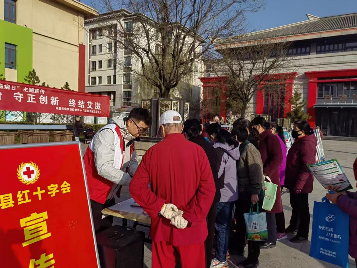 12月1日,陇县红十字会、陇县卫健局等9个部门及城区各医疗卫生单位在上河郡广场共同开展了以“社会共治、守正创新、终结艾滋”为主题的第38个“世界艾滋病日”主题宣传活动。