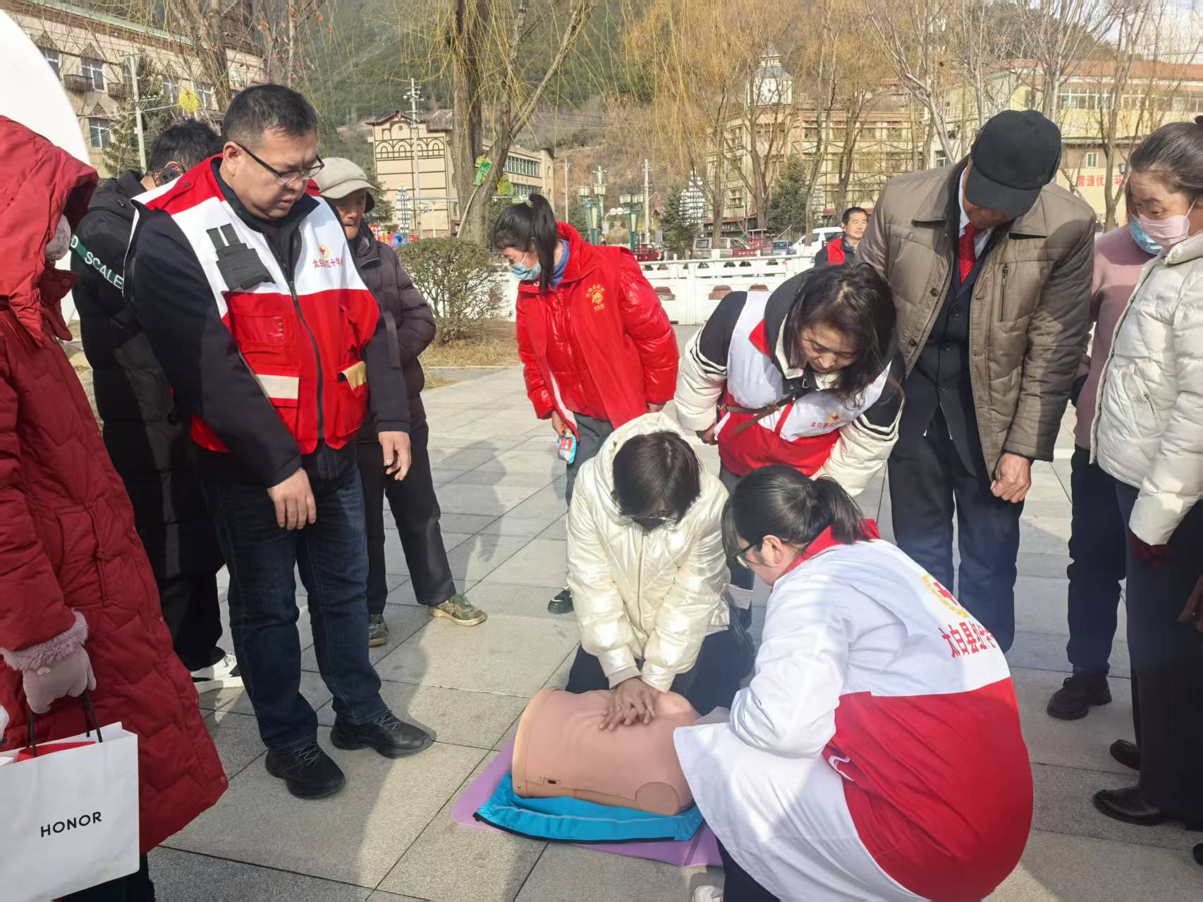 为深化“宪法+急救”融合宣传,县红十字会专业救护师资团队现场演示心肺复苏、气道异物梗阻解除等急救技能。志愿者利用模拟人进行分步操作,并邀请群众参与实操练习,手把手指导按压深度、频率及人工呼吸要点。演示中穿插讲解《中华人民共和国民法典》中“好人条款”对见义勇为行为的法律保障,鼓励群众在紧急情况下依法施救。活动累计培训群众100余人次,发放急救包20余个,有效提升公众应急自救互救能力。