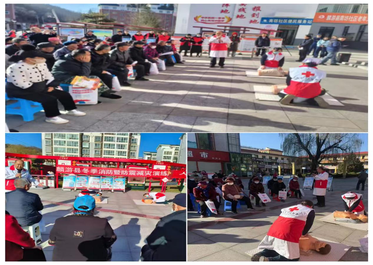 11月27-28日,麟游县红十字会联合县应急管理局先后在九成宫镇南坊、官坪、东大街、西大街4个社区开展以“防震减灾筑防线 科普教育护平安”为主题的冬季消防暨防震减灾应急演练活动。县委常委、常务副县长上官青云出席启动仪式并讲话。九成宫镇、县住建局、县消防救援大队、各社区负责人参加活动。
