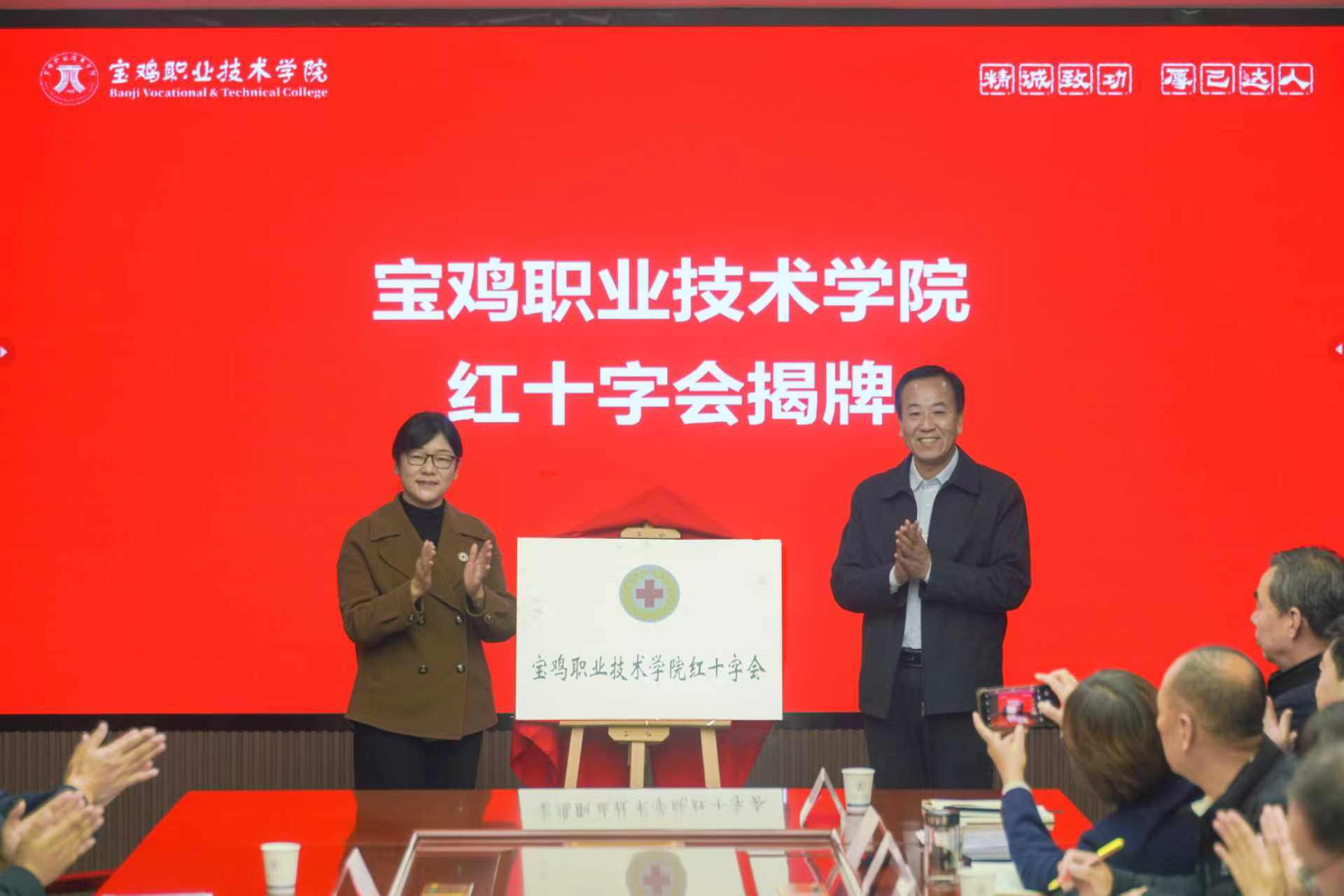 11月25日,我市首个高校红十字会在宝鸡职业技术学院成立,学院党委书记薛建恩出席仪式并致辞,市红十字会常务副会长蒋惠宁、学院院长张永良共同为学院红十字会揭牌。