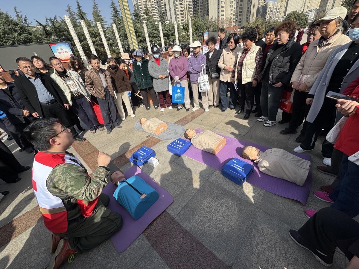 活动现场,市红十字会充分发挥专业优势,联合金台区卧龙寺社区卫生服务中心医护人员,搭建起专业的爱心义诊与救护培训服务阵地。义诊区域内,医护人员耐心为居民免费测量血压,针对老年人、慢性病患者等重点群体,细致解答慢病管理等健康问题,提供个性化健康指导建议,把专业医疗服务送到群众身边,切实解决居民日常健康咨询需求。