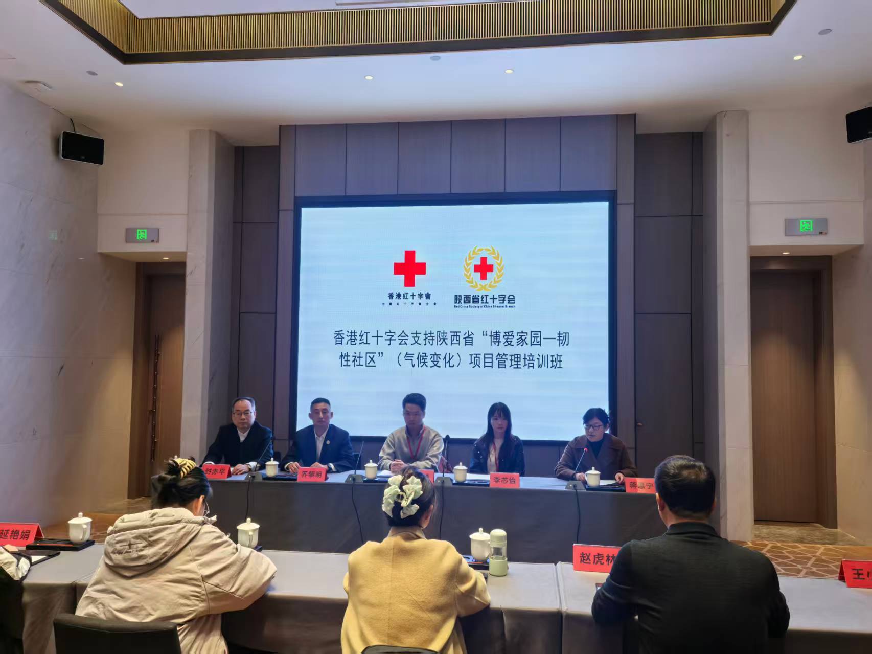 11月25日,由陕西省红十字会主办,宝鸡市红十字会、陈仓区红十字会联合承办的香港红十字会支持陕西省“博爱家园—韧性社区”(气候变化)项目管理培训班在宝鸡市陈仓区顺利开班。来自延安、汉中、宝鸡市红十字会及项目县区骨干人员参加培训。陕西省红十字会赈济救护部部长乔黎明,香港红十字会项目协调主任张琦、国际及赈灾服务主任李芯怡出席开班仪式,开班仪式由宝鸡市红十字会常务副会长蒋惠宁主持,陈仓区政府副区长封赤平致欢迎辞。