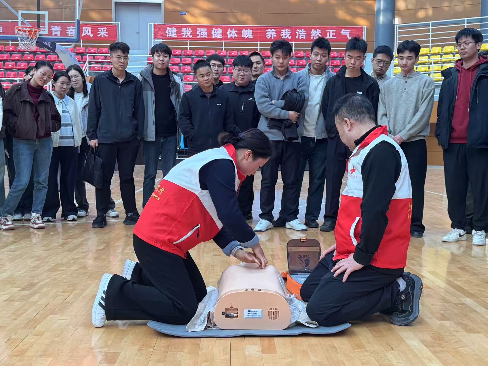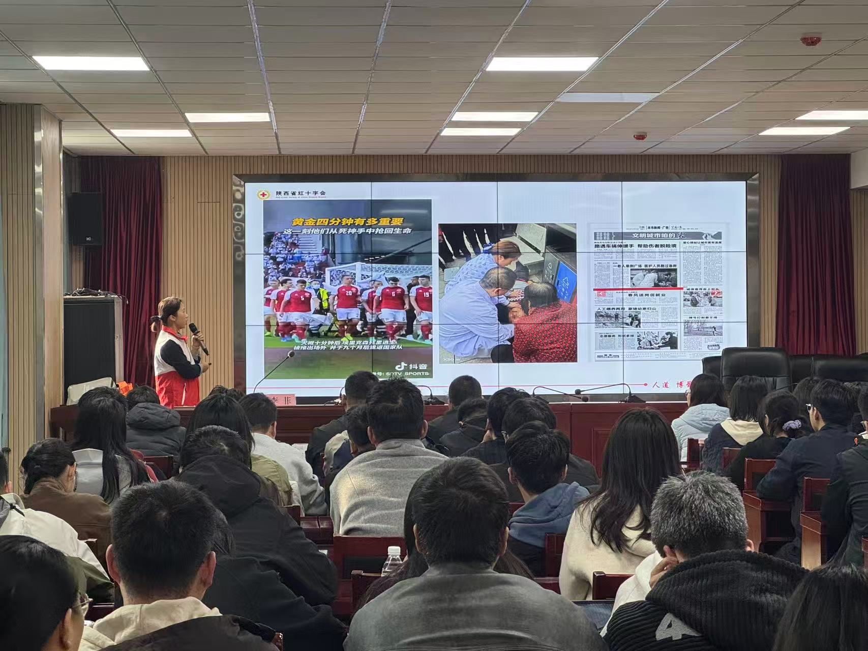 本次培训特邀三名陕西省救护师资安鹏程、李菲及梁亚丽老师开展教学。在培训过程中三位老师采用“理论+实操”双轨教学,依托多媒体课件、立体地展示了心肺复苏和AED使用流程;以生动形象的语言和真实案例,为学员们讲授了红十字基础知识,三救三献业务,心肺复苏(CPR)以及自动体外除颤仪(AED)的核心理论及操作技能,并针对日常工作中可能发生的突发状况,分别阐述相应的应对措施。这些急救技能既是自我保护的“硬本领”,更是守护群众生命健康的“民生软实力”,助力学员精准掌握急救逻辑、深化对急救意义的认识。