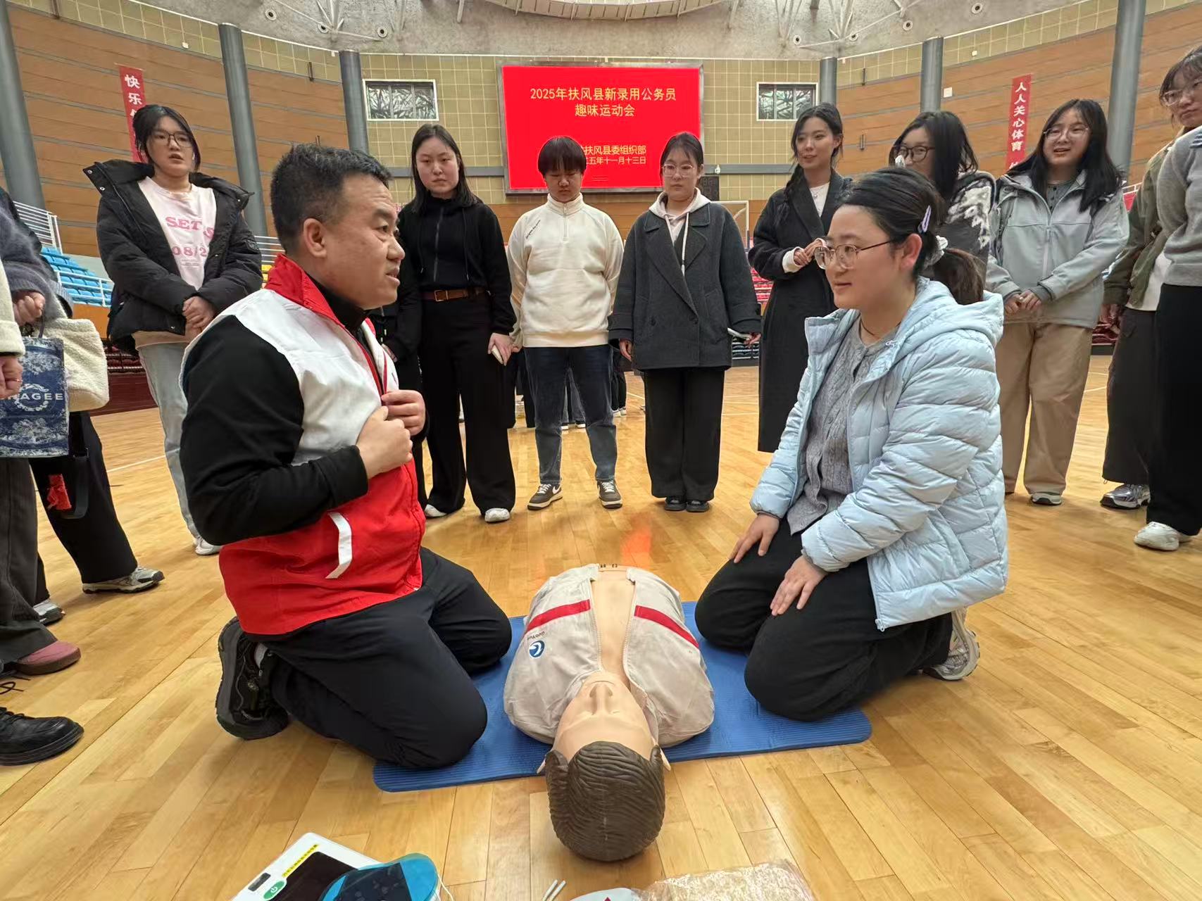 11月13日下午,扶风县红十字会联合县委组织部,针对2025年新招录公务员开展应急救护培训,本次培训旨在提升新招录公务员应对突发状况的应急处置能力,切实保障群众生命安全,为基层工作增添坚实的应急救护力量。县委组织部副部长杨红玉、县红十字会常务副会长李洁参加培训。