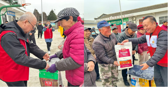 仪式现场,协会向龙槐塬村30户困难群众捐赠了总价值1.2万元的“新春爱心礼包”,包含米面油、毛毯、马甲、春联等实用物资。