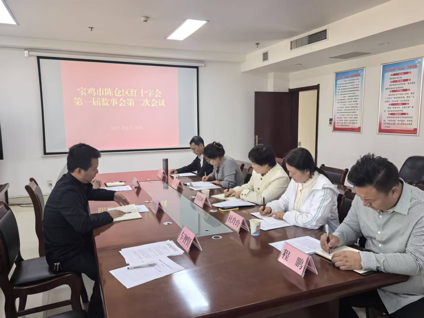 2025年9月24日下午,宝鸡市陈仓区红十字会第一届监事会第二次会议顺利召开。会议审议通过了2024年度目标任务完成情况工作报告、成立以来捐赠款物管理使用及项目执行情况报告,部署了下一阶段监督重点任务,并围绕区红十字会今后工作展开专题研讨。监事会全体成员、区红十字会常务副会长田军伟及相关业务科室工作人员列席会议。
