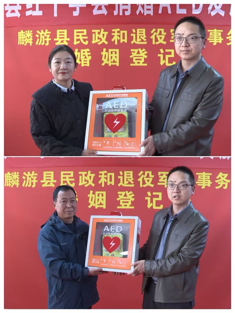 李志浩副县长为九成宫镇南坊社区、县民政局婚姻登记处发放了AED。对各级红十字会、爱心企业、爱心人士多年来的大力支持和爱心捐赠表示衷心的感谢。他要求各受赠单位要扛起管理维护主体责任。一要明确责任,强化日常管护。要按照《AED捐赠管理协议》和相关规定,明确管理人员,定期检修维护,确保设备时刻处于良好备用状态。二要强化培训,提高急救能力。县红十字会要组织受赠单位人员、志愿者等开展全员培训,大力倡导“人人学急救、人人会急救,关键时刻人人敢急救”理念,确保各点位设备到位、技能到位,人员操作专业规范。三是广泛宣传,营造向善氛围。县融媒体中心、红十字会要多渠道、多角度、多形式宣传此次公益捐赠善举,生动讲述爱心故事,大力弘扬红十字精神,努力营造全民支持公益事业的良好社会氛围。持续鼓励和引导更多爱心企业、爱心人士关注、参与我县公共场所AED配置工作,努力构建“救”在身边应急救援服务体系,为全县人民群众的生命安全健康保驾护航。