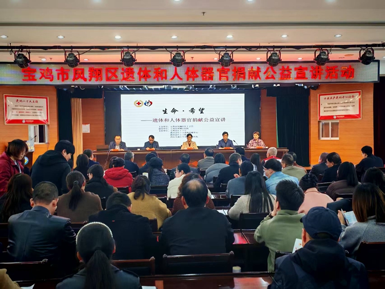 11月4日,凤翔区红十字会举办以“生命•希望”为主题的遗体和人体器官捐献公益宣讲。宝鸡市红十字会常务副会长蒋惠宁出席活动。