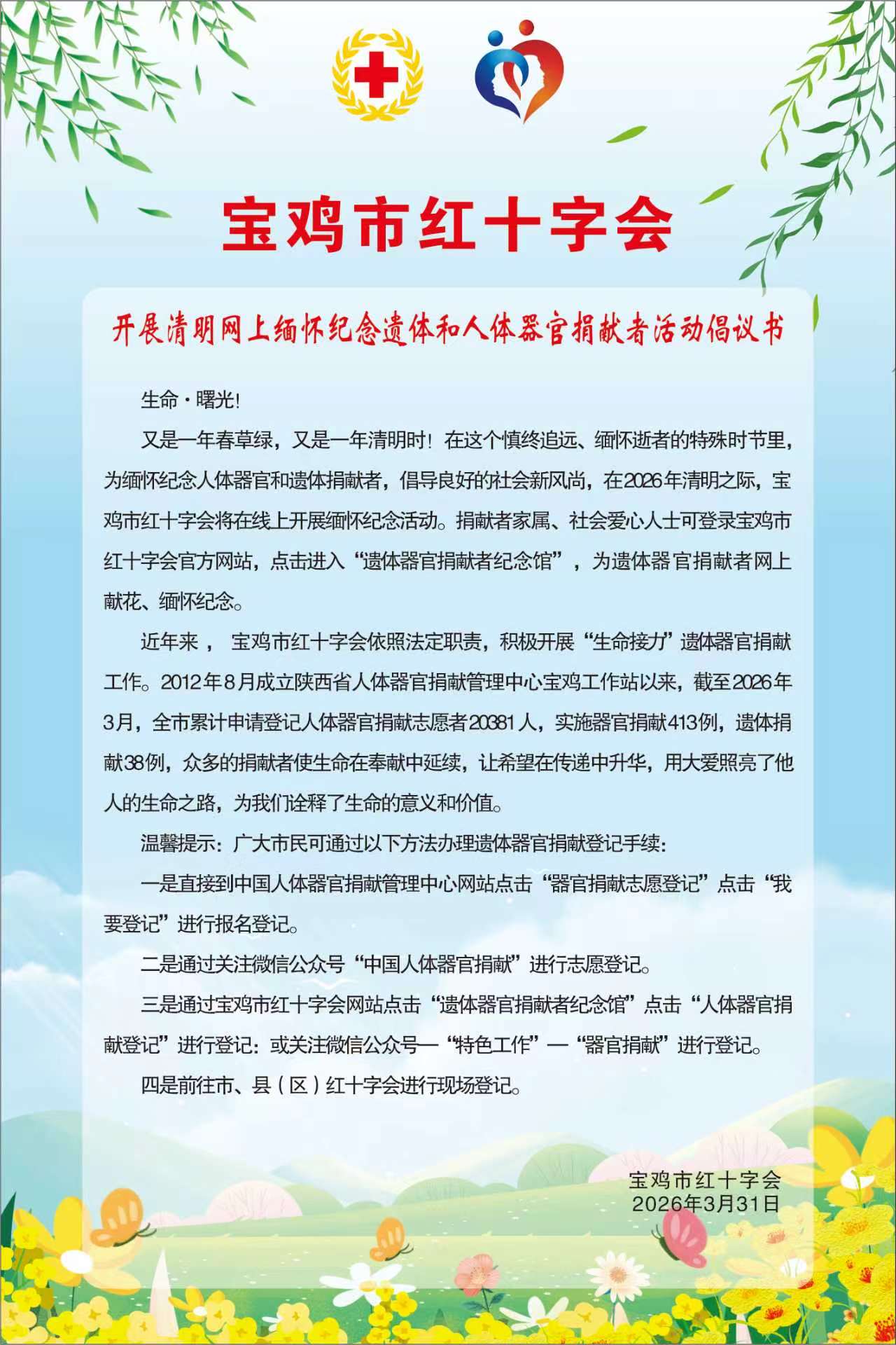 宝鸡市红十字会开展清明网上缅怀纪念遗体和人体器官捐献者活动倡议书