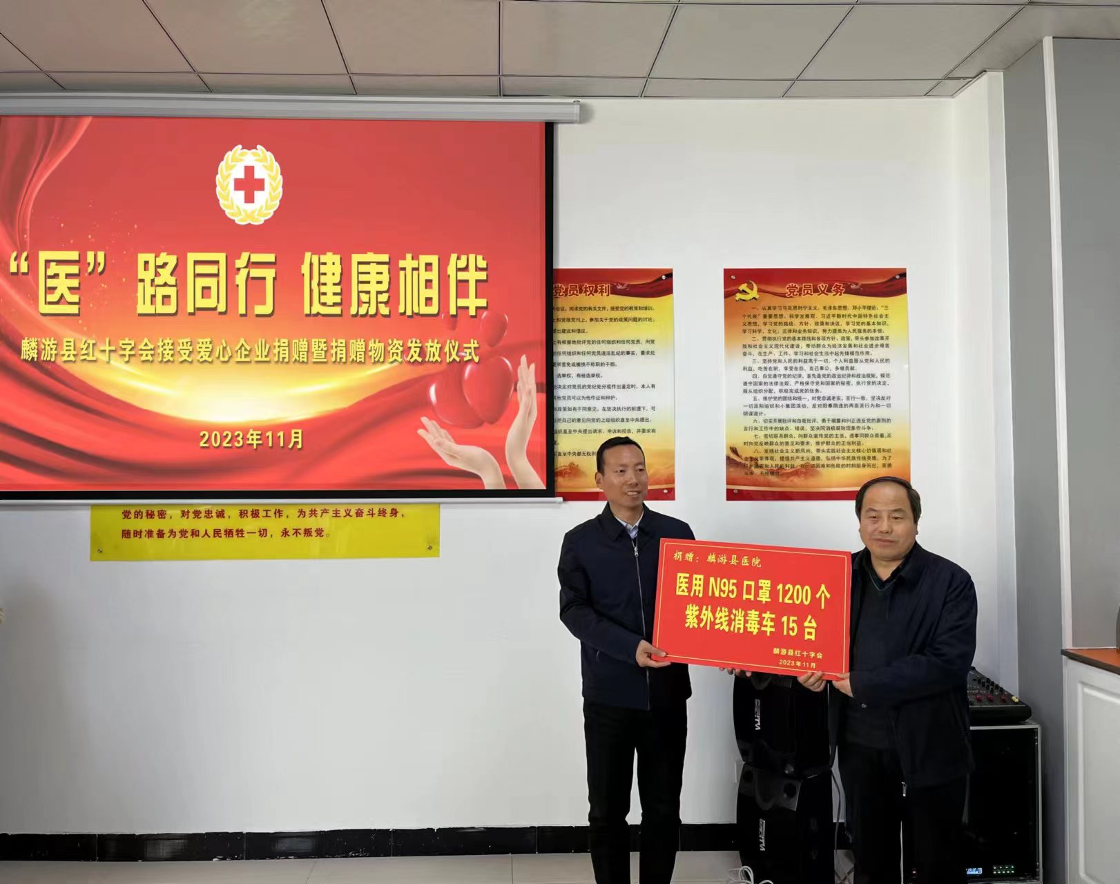 上午10:30分,县红十字会举行的“医”路同行、健康相伴爱心企业捐赠暨捐赠物资发放仪式在县医院医技楼六楼会议室正式开始,县委常委、副书记山高飞出席活动并讲话,县政府副县长、红十字会会长张晓军主持捐赠发放仪式。县卫健局党委委员、局长任建平,县红十字会党支部书记、常务副会长李艳及各医疗卫生单位主要负责人等20余人参加了本次活动。