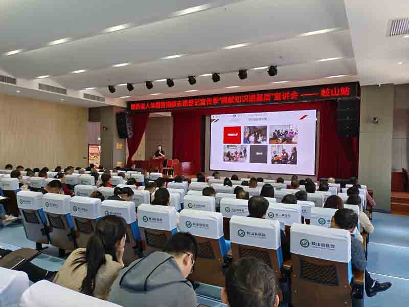 11月1日,陕西省人体器官捐献志愿登记宣传季“捐献知识进基层”活动在我市岐山县开展,陕西省人体器官捐献管理中心副主任何洁,宝鸡市红十字会常务副会长任爱军,岐山县副县长裴彬,宝鸡市各县区红十字会负责人、人体器官捐献联络员,岐山县相关单位、各二级医疗机构负责人和临床科室主任,各镇(中心)卫生院院长,陕健医驻岐各医院、各民营医院负责人参加了本次活动,活动由岐山县红十字会常务副会长袁力主持。